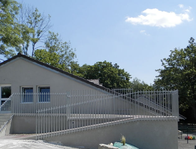 Type de projet : construction neuve. Un ancien pavillon couvert d’une toiture à deux versants en tuiles plates avec deux lucarnes, a été restructuré et prolongé latéralement pour créer un jardin d’enfants de 38 lits au r de c et 3 classes spécialisées à l’étage.